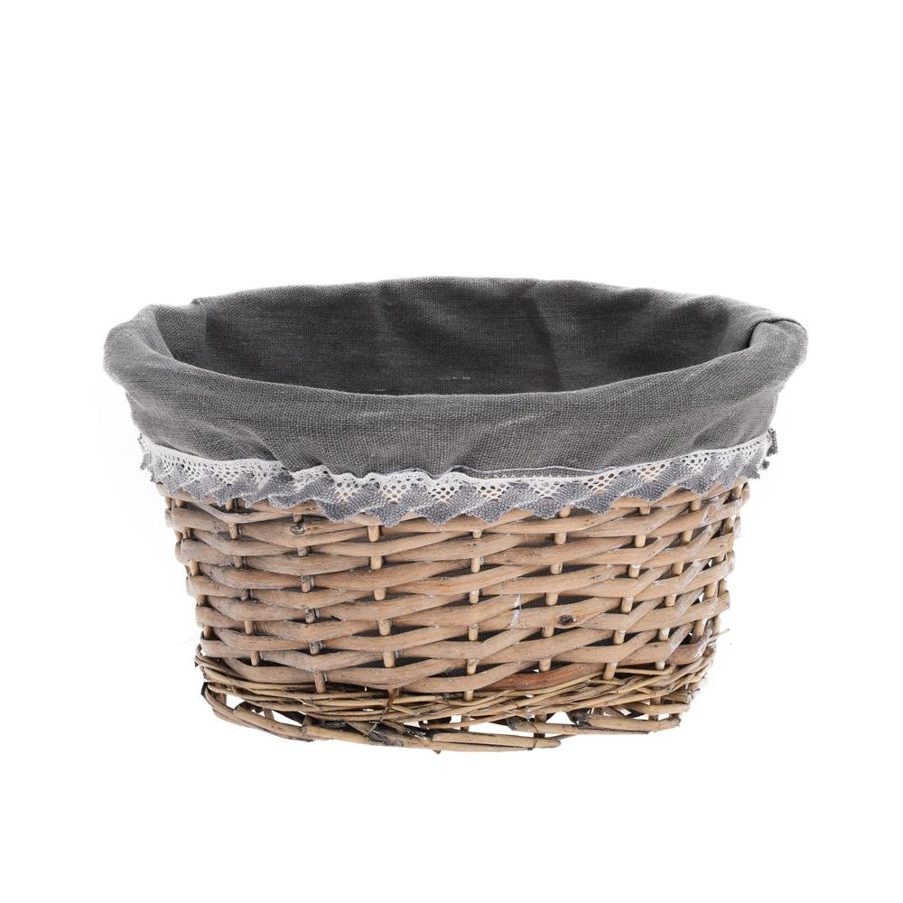 Prút. košík ovál šedý šedá látka 29x23x15cm
