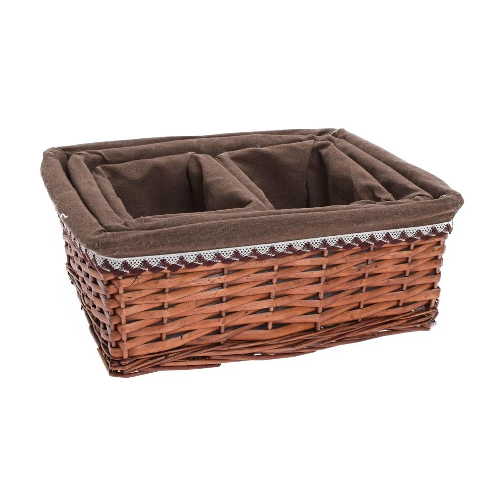 Prút. košík s/3 obdĺžnik tm.hnedý tm.hnedá látka 40x30x16cm + 34x24x14cm + 18x14x12cm