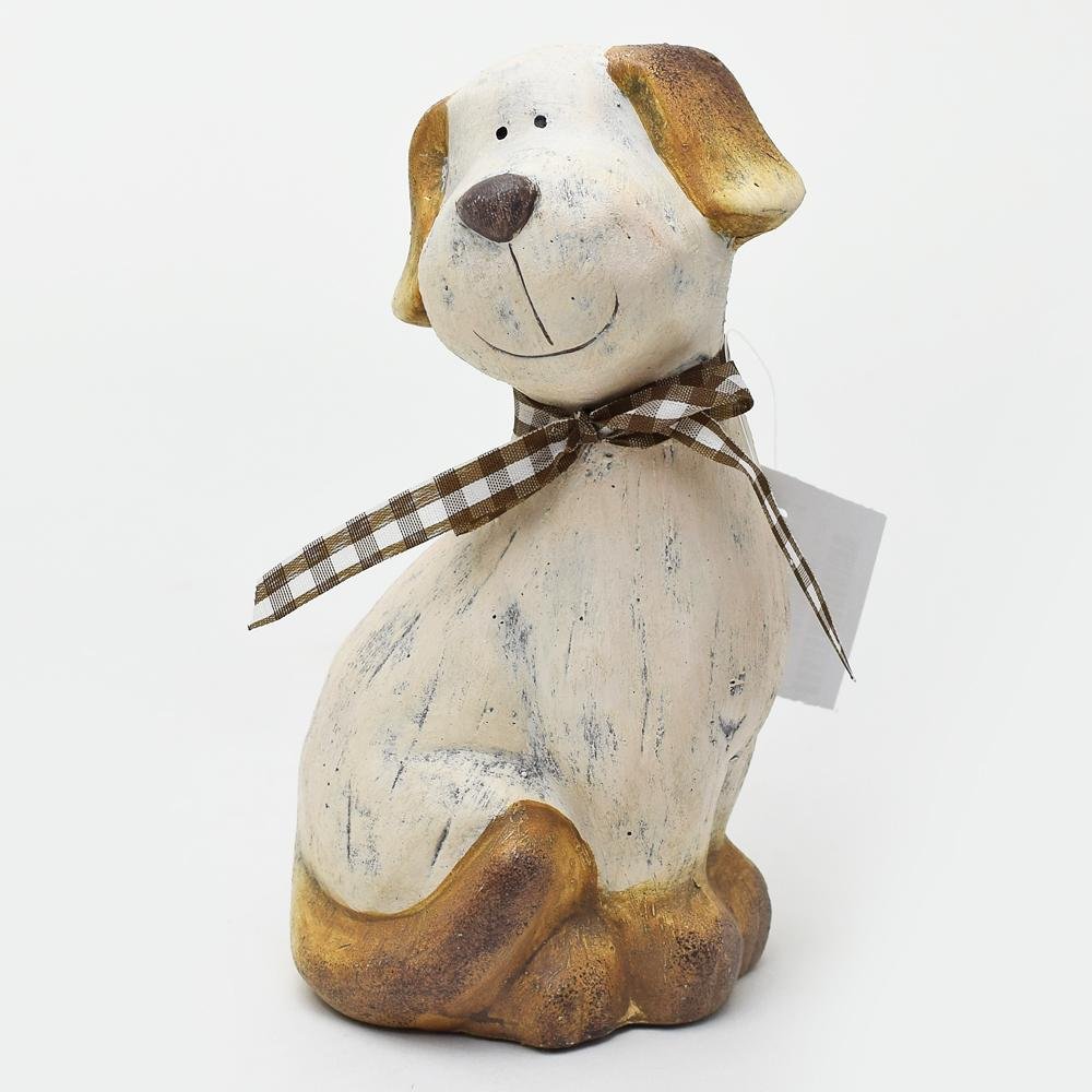 Dekorace Pes sediaci s mašľou 9,5x8,8x18,5cm