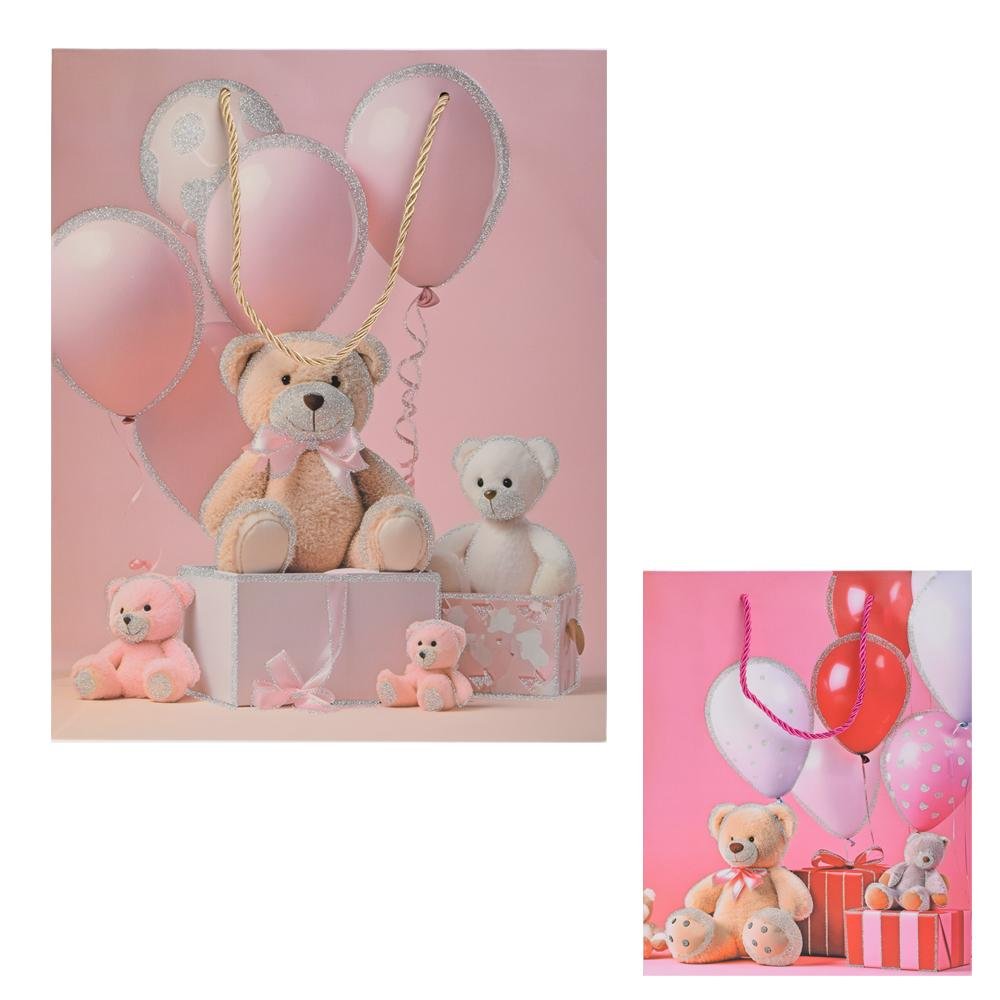 Darčeková taška m 26x32cm macko s balónmi