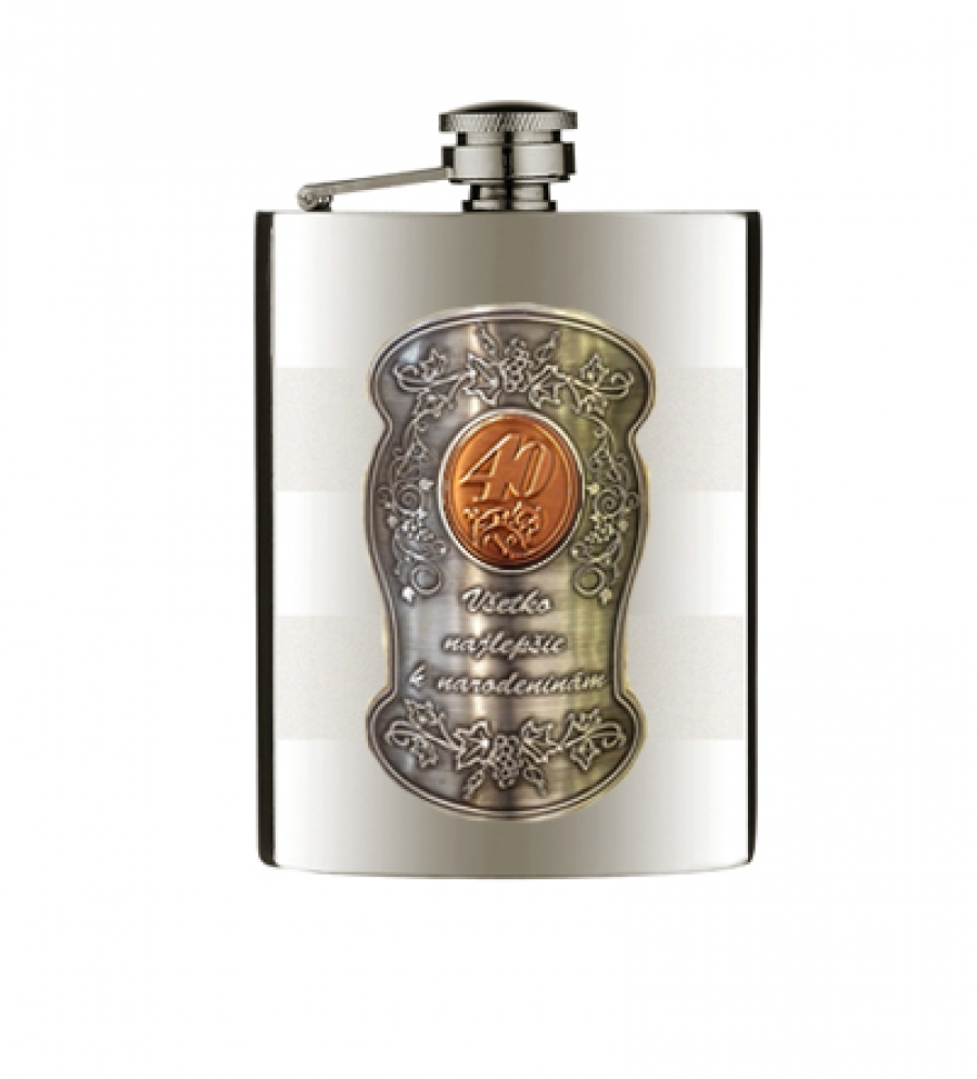 Ploskačka nerez oceľ, kovová pečať s venovaním Všetko najlepšie k narodeninám s vekom. Objem 200 ml. Balenie retail.