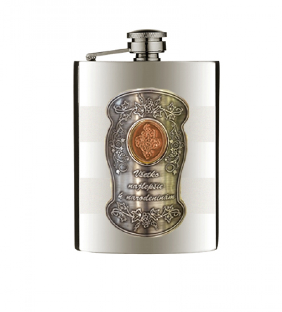 Ploskačka nerez oceľ, kovová pečať s venovaním Všetko najlepšie k narodeninám bez veku Objem 200 ml. Balenie retail.