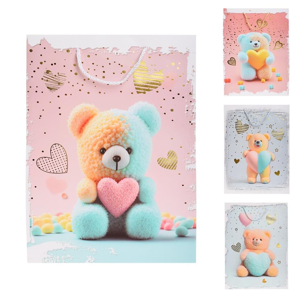 Dekorace Darčeková taška l 30x41cm macko so srdcom