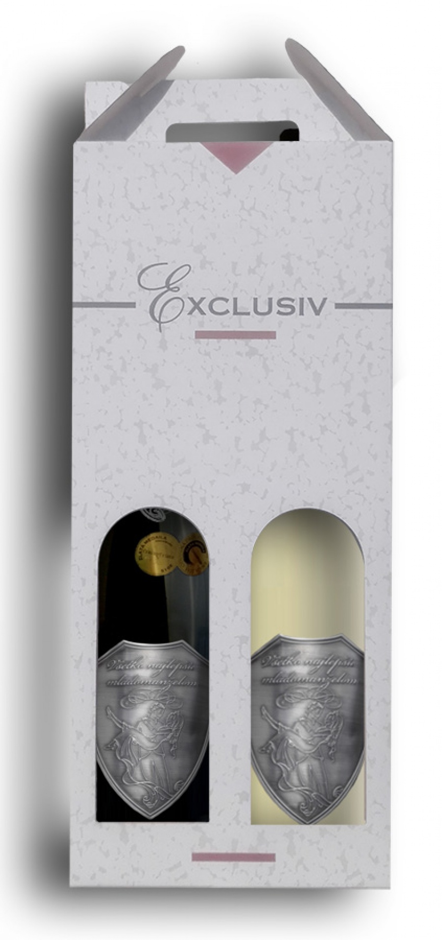 Darčekový set obsahuje - 2x víno akostné odrodové s kovovou etiketou s venovaním Všetko najlepšie mladomanželom, darčekové balenie exlusive.Flaša: