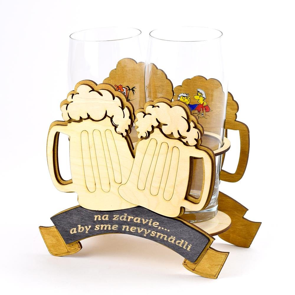 Dekorace 715 pivné poháre drevo+sklo v22,5x21x10cm