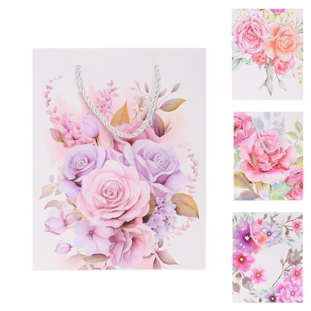 Dekorace Darčeková taška s 23*18*10cm kvety glitter