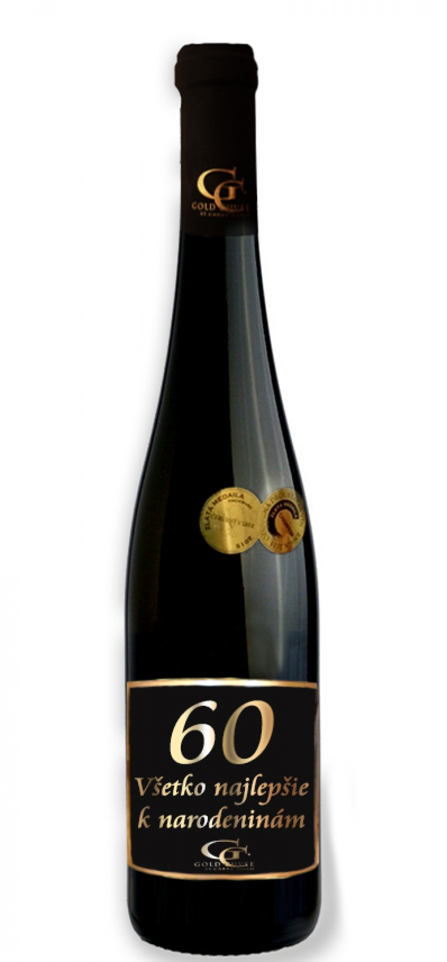 Darčekové víno obsahuje metalickú etiketu s vysokým rozlíšením pozlátenú.