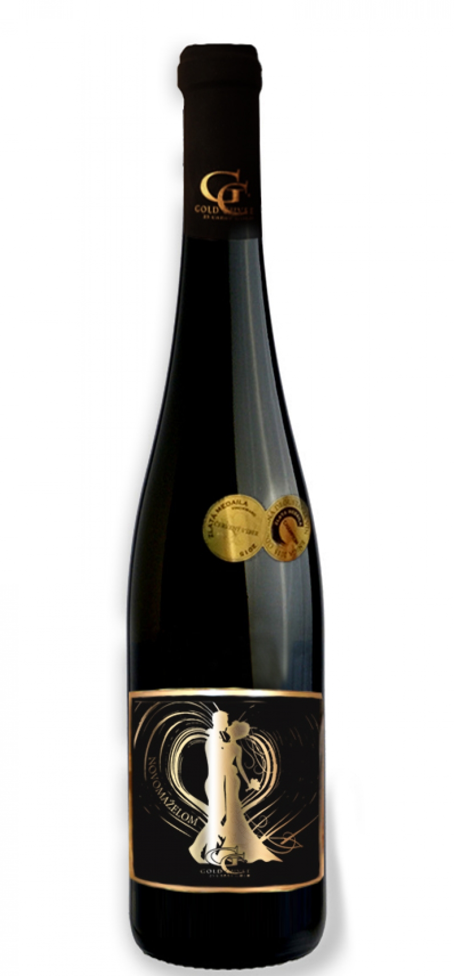 Darčekové víno obsahuje metalickú etiketu s vysokým rozlíšením pozlátenú.