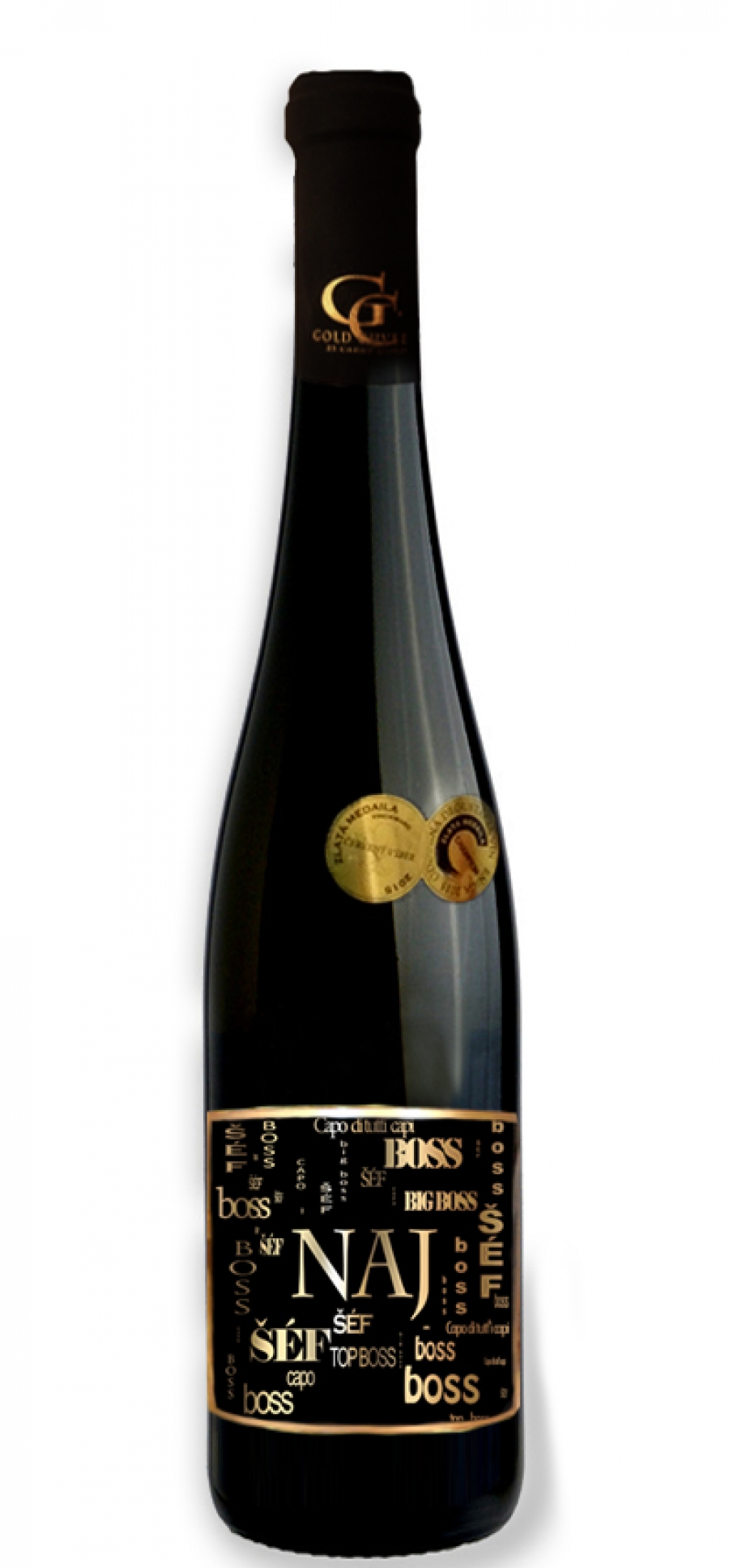 Darčekové víno červené s metalickou zlatou etiketou. Víno je vyrobené v malokarpatskej vínnej oblasti - región Limbach.