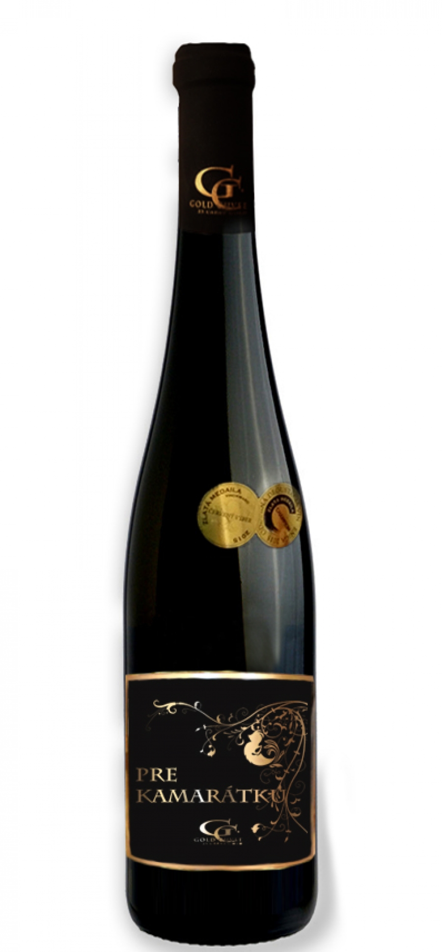 Darčekové víno červené s metalickou zlatou etiketou. Víno je vyrobené v malokarpatskej vínnej oblasti - región Limbach.