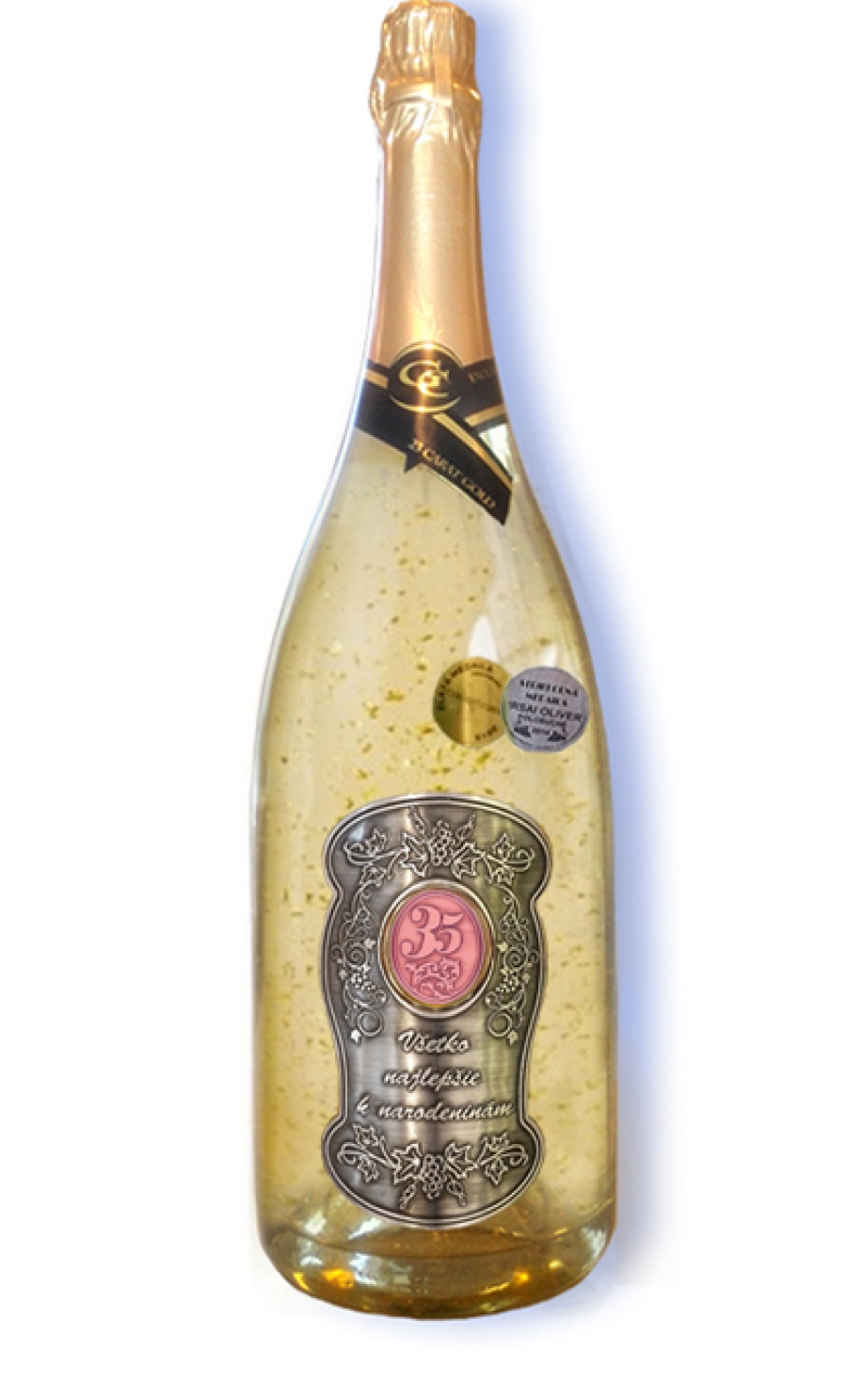 35 rokov Zlaté šumivé 1,5 L Narodeniny kovová etiketa