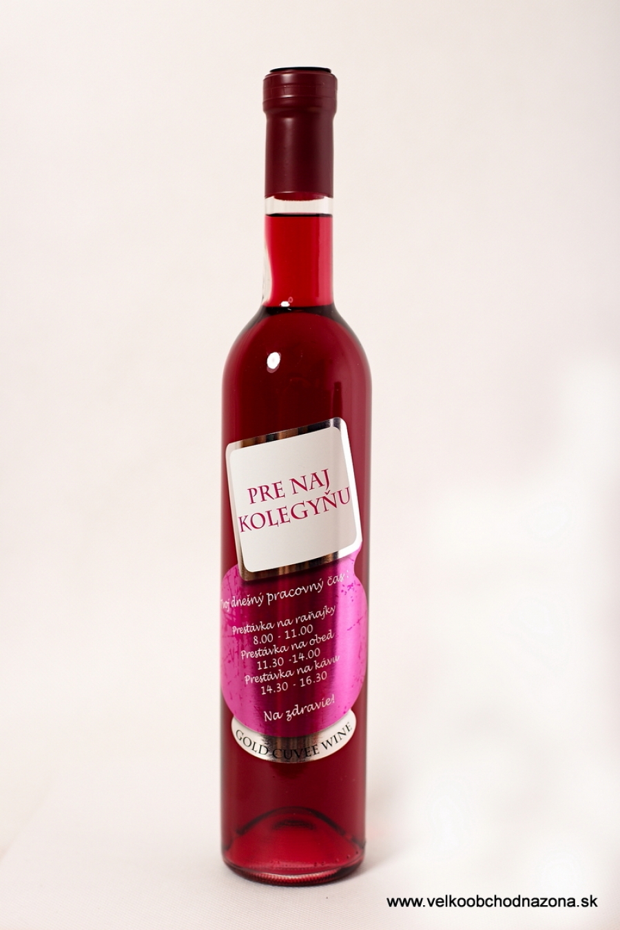 Darčekové víno s venovaním. Text venovania: Pre naj kolegyňu : Tvoj dnešný pracovný čas: Prestávka na raňajky 8:00 -11:00 Prestávka na obed 11:30 - 14:00... Obrázok je ilustračný, reálny vizuál sa môže mierne líšiť.