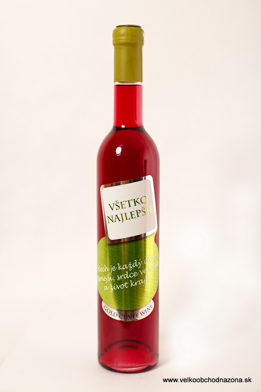 Druh vína: Darčekové víno s venovaním. Irsai Olver, Irsai Oliver s 23 karátovým zlatom, Frankovka Modrá, Ríbezľové víno, Višňové víno, Jahodové víno. Vyrobené na slovensku.