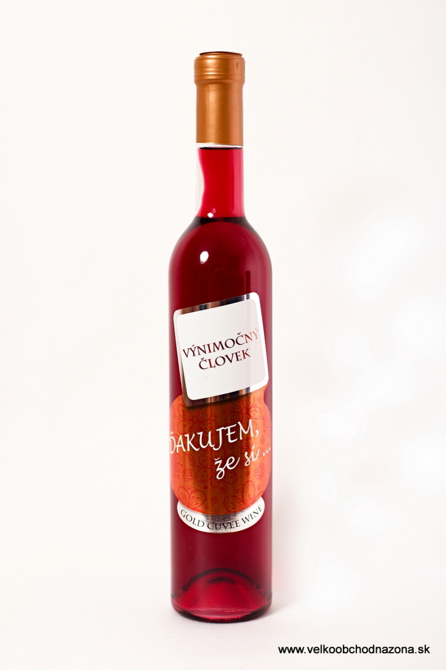 Darčekové víno s venovaním. Text venovania: Výnimočný človek - ďakujem, že si Etiketa s metalickým podkladom, lakovaná. Tlač offset. Vínová fľaša... Obrázok je ilustračný, reálny vizuál sa môže mierne líšiť.