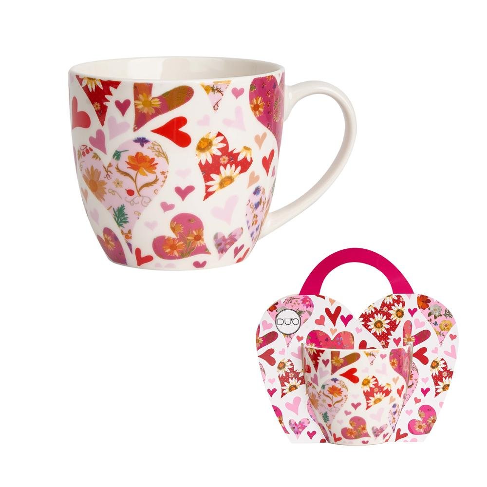 Dekorace Šálka 460ml ružové srdcia