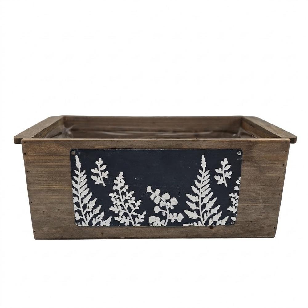 Dekorace 514fl/s debnička drevo listy l 35,5x16x13cm hnedá+modrá
