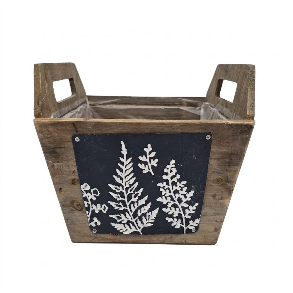Dekorace 515fl/s debnička uši drevo listy l 21x21x15cm hnedá+modrá