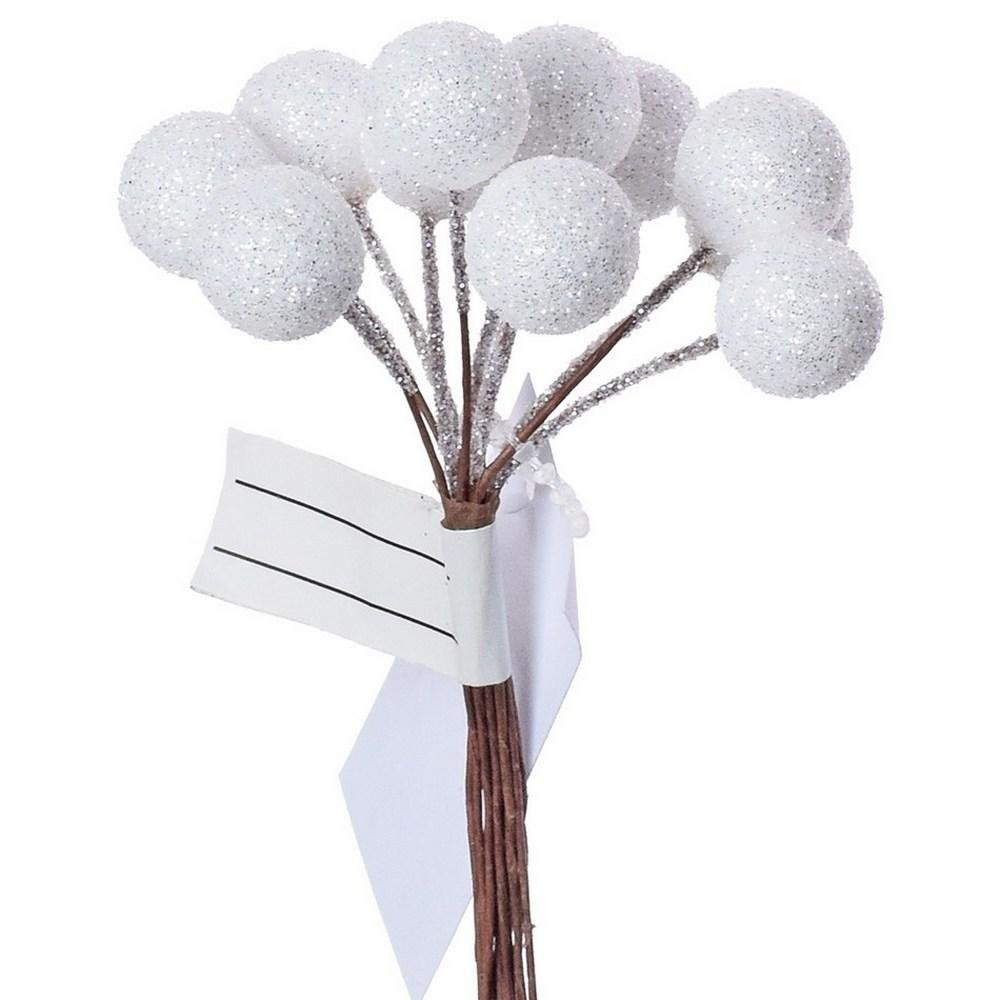 Dekorácia Zápich zväzok s/12 biele guličky l:10cm