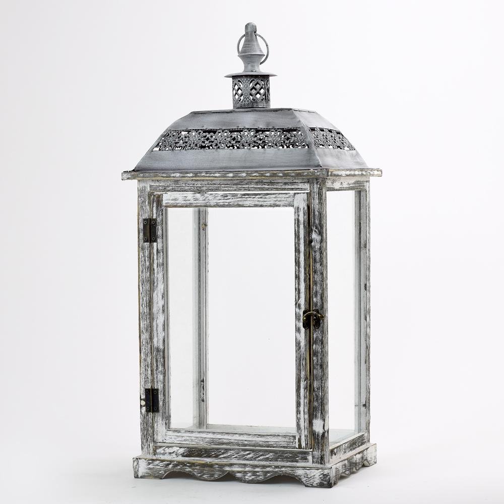 Dekorácia 295fl/s lampáš bielo šedý  65cm
