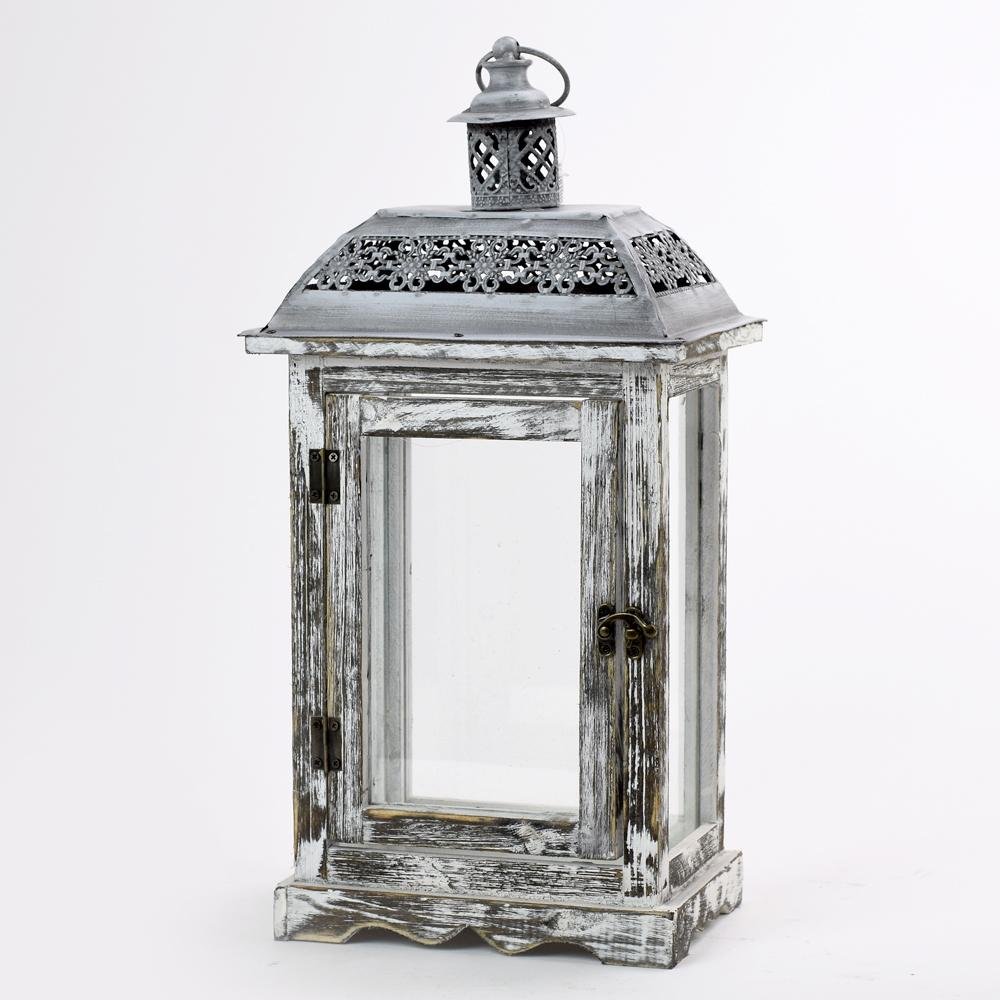 Dekorácia 295fl/s lampáš bielo šedý 49cm