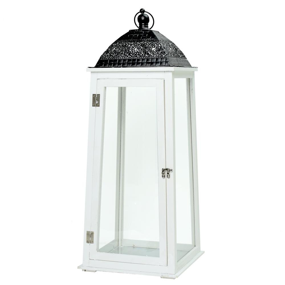 Dekorácia 398fl/s lampáš drevo biely l 25,5x25,5x72cm