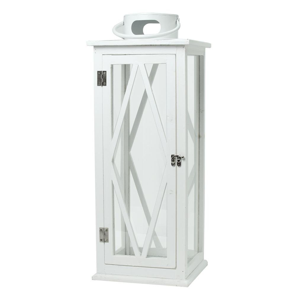 Elegantný biely drevený lampáš s minimalistickým dizajnom a čistými líniami je skvelým doplnkom pre interiér aj exteriér. Sklenené steny umožňujú praktické krásne rozptýlenie svetla, zatiaľ čo dvierka s kovovým uzáverom zaručujú jednoduché použitie.