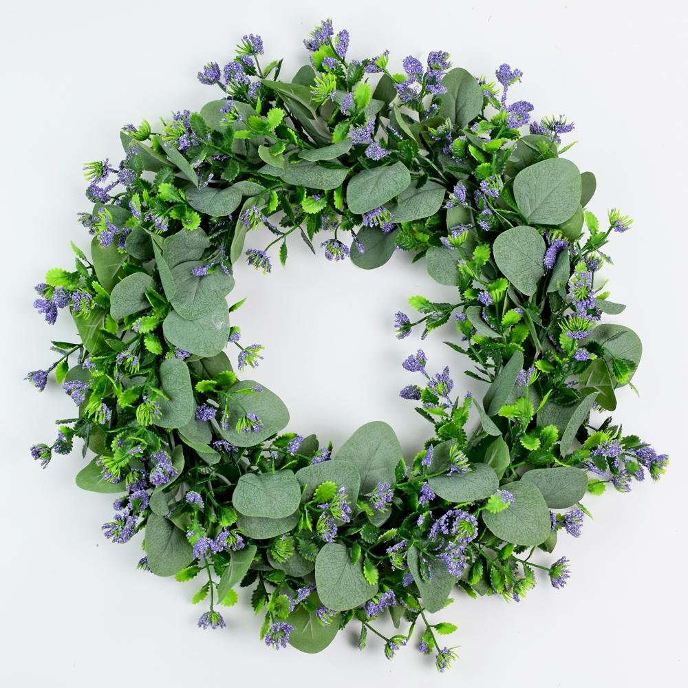 Dekorácia Veniec eukalyptus fialový kvet 46cm