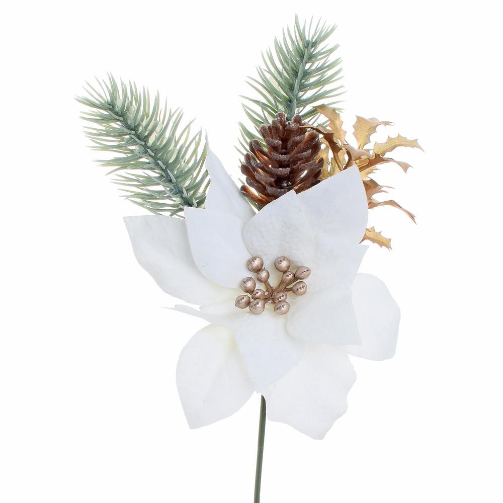 Vianočná ruža krém s čečinkou a šiškou 20cm