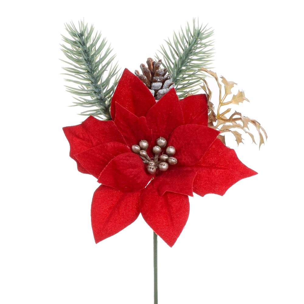 Vianočná ruža červená s čečinkou a šiškou 20cm