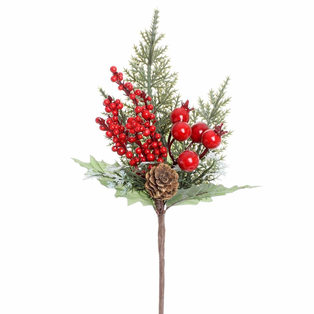 Dekorácia Vian. konár tuja, zeleň, červ plody, šišky 25cm