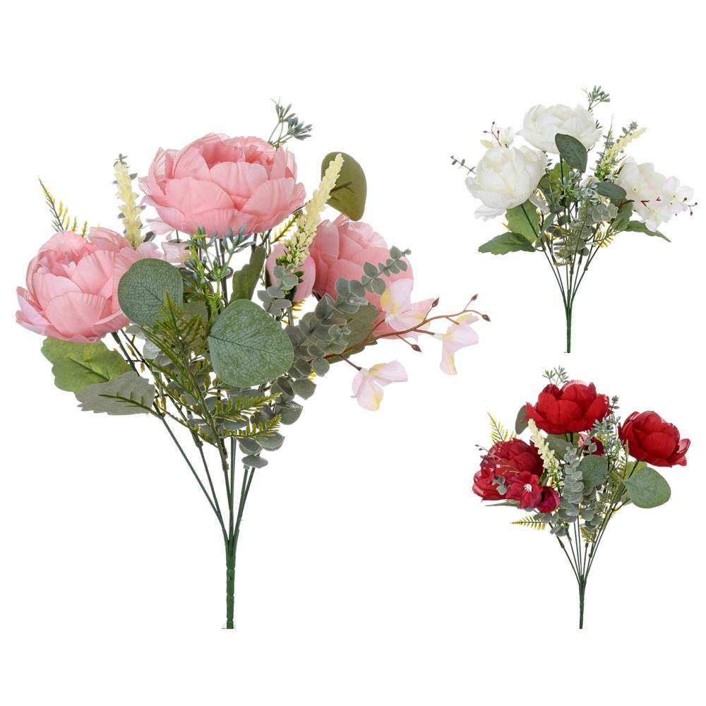 Dekorácia Kytica pivonky, veronika, drob. kvety, zeleň mix/f 38cm