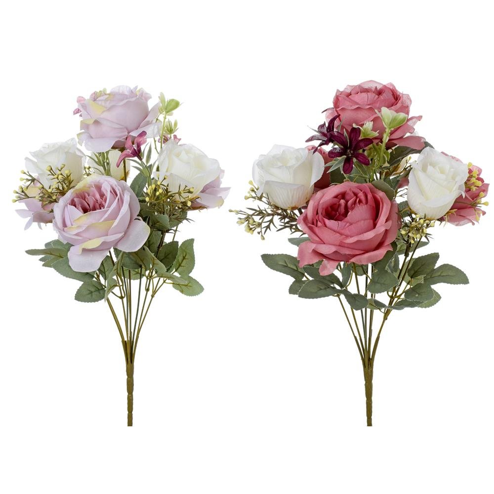 Dekorácia Kytica ruža, drob. kvety, zeleň, mix/f 40cm