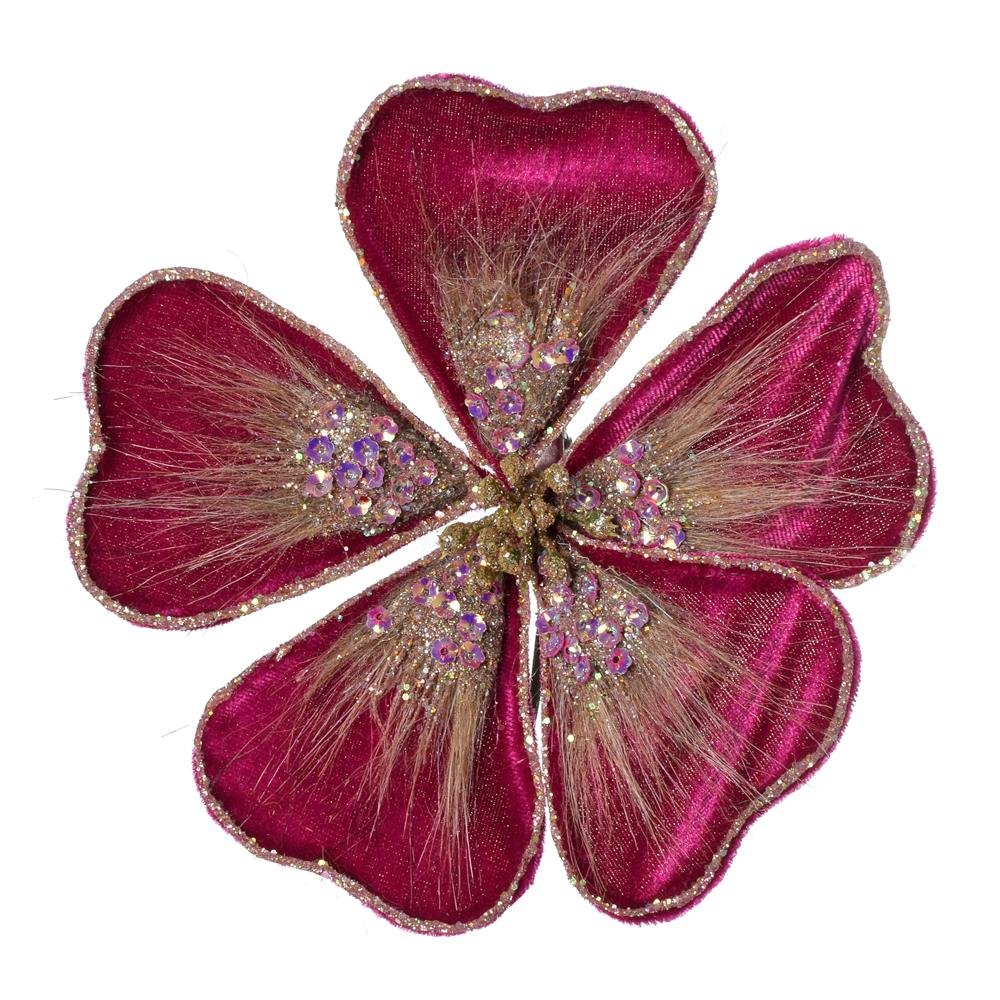 Dekorácia Hlava kvet na klipe ruž. 14cm