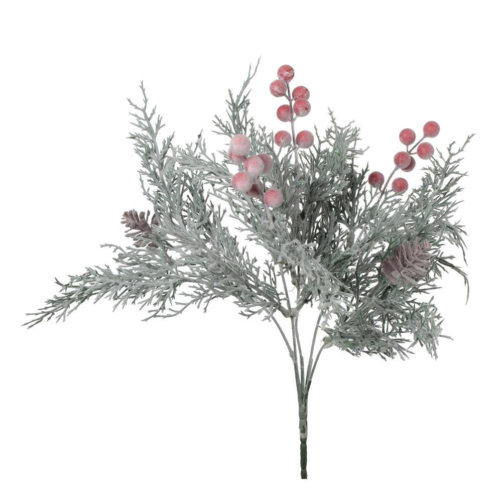 Dekorácia Konárik tuja biela, čer. bobulky, šišky 37cm