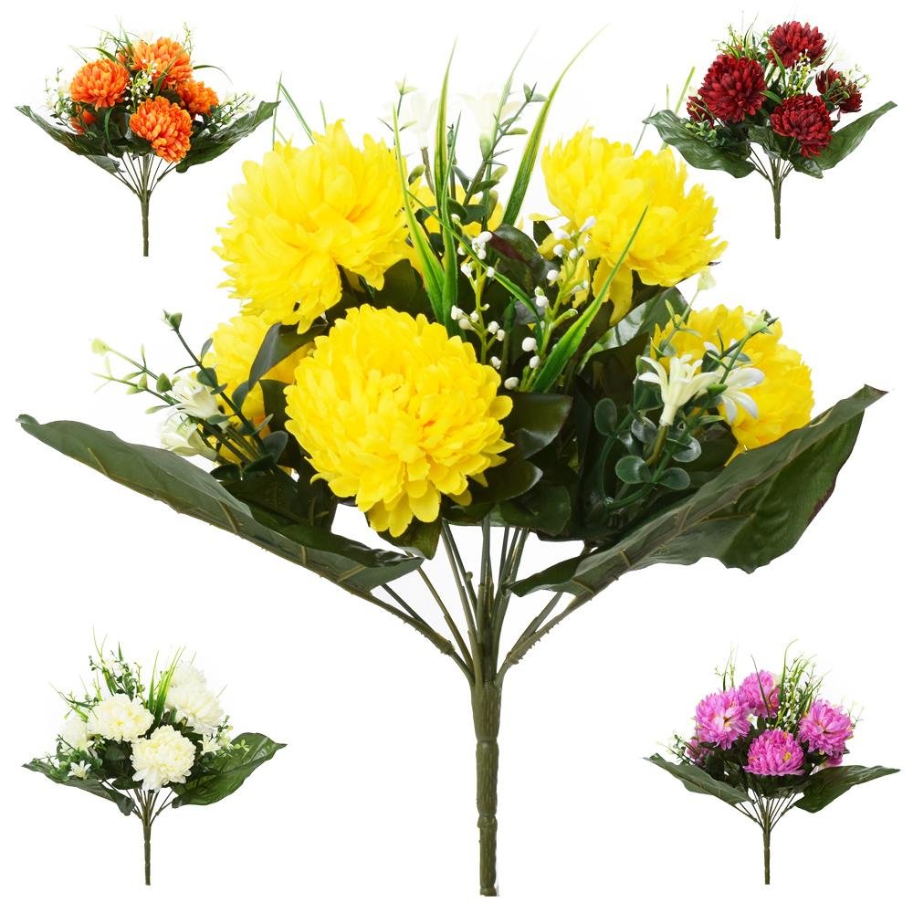 Dekorácia Kytica chryzantéma, drob. zeleň mix 5f 35cm