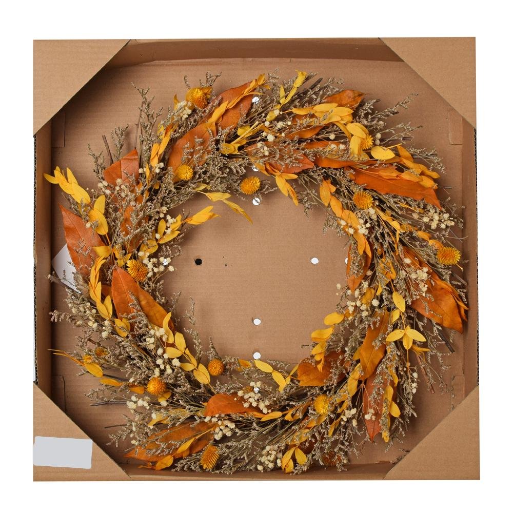 Dekorácia Veniec suš. jes, bodl.,gyps.,limo,listy, žl/or/kr/hne 46cm