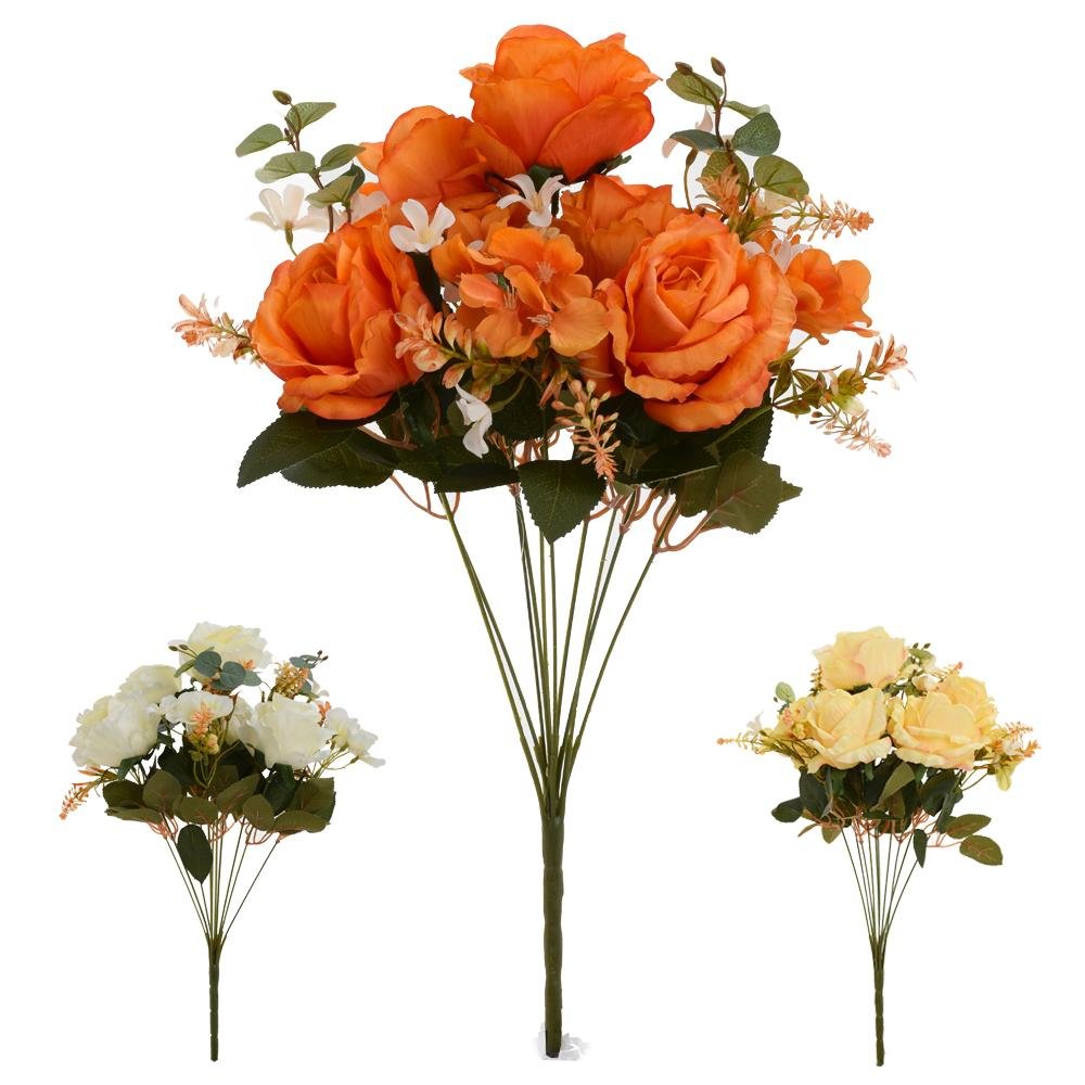 Dekorácia Kytica ruža eukalyptus 3f 48cm