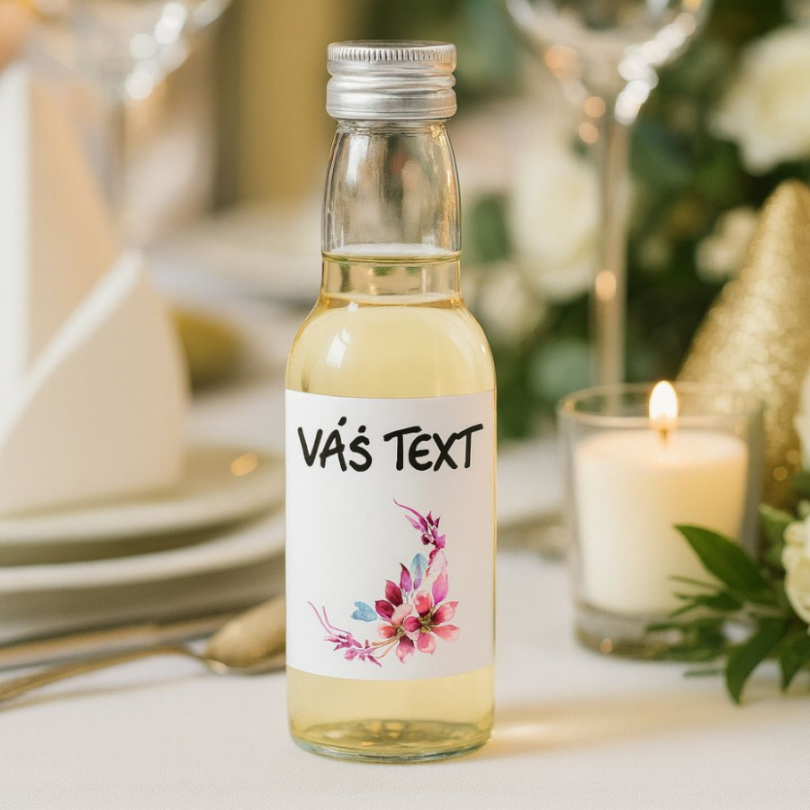 Fľaštičky je možné vyrobiť aj ako menovky s menami hostí - vhodné pri zasadacom poriadku.