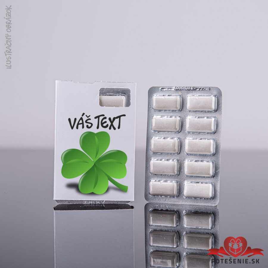 Žuvačky sú balené v blistri po 10 ks v papierovým obalom s grafikou na mieru