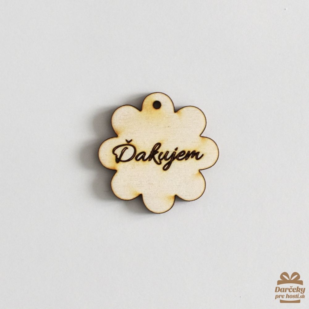 Drevený výsek s dierkou - ĎakujemVeľkosť:cca 36 x 36 x 3 mmMateriál: topoľová preglejkaFarba: prírodná