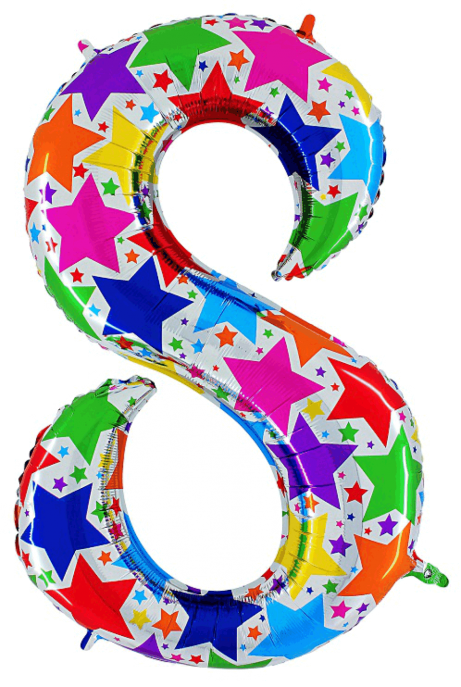 Balóny Číslice - Balón Narodeninové Číslo 8 hviezdy 100cm. Rôzne veľkosti a balenia.
