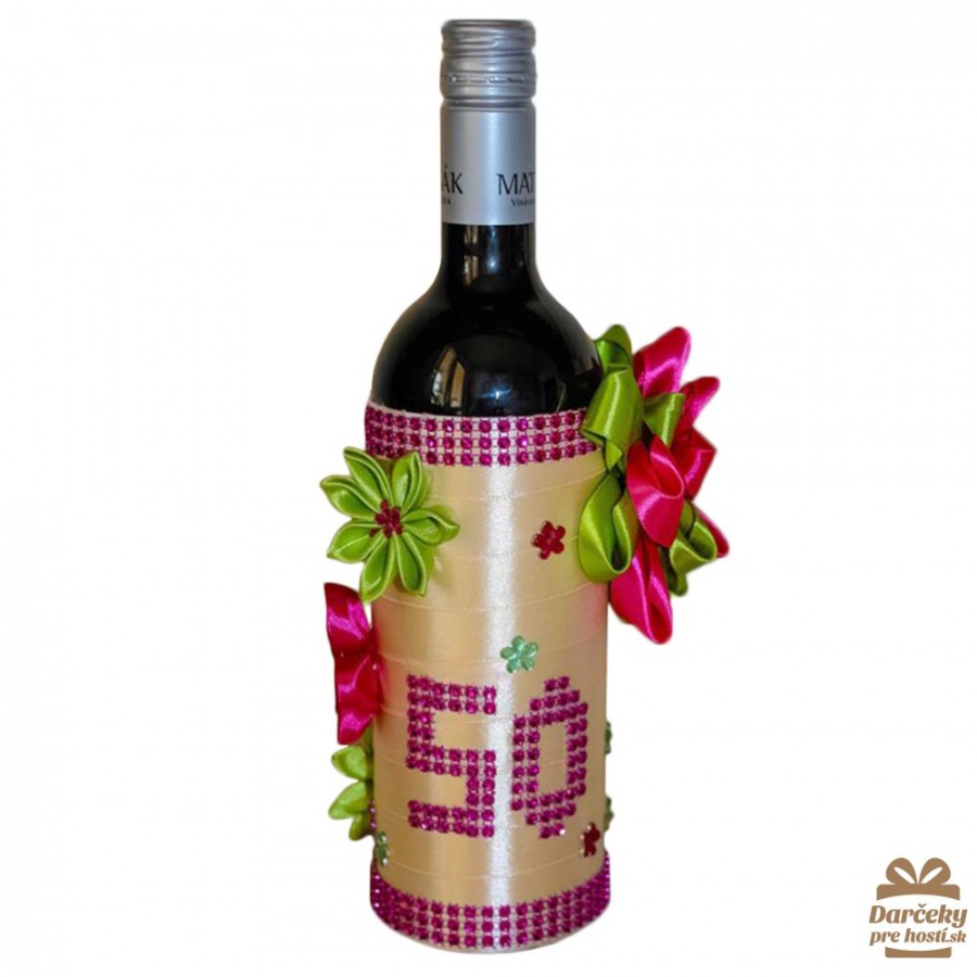 Fľaša sa môže vyzdobiť na 100 rôznych spôsobov. Môžete z nej vytvarovať ženícha, nevestu alebo tanečnicu tanga ;-) dá sa však aj takto jedoducho a účelne ozdobiť stuhou a doplniť výzdobu ručne vytvorenými kvietkami štýlom kanzashi a malými plastovými