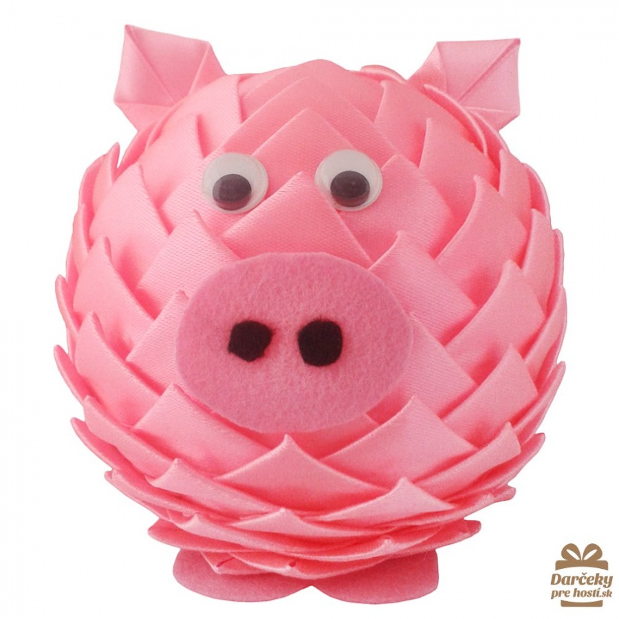 Prasiatko je vytvorené zo stúh, polystyrénovej gule a a ostatných dekorácií na dozdobenie (ako napr. očká, filc na rypák a nohy).Je vytvorené pomocou techniky falošný patchwork, kde sa trojuholníčky stuhy prichytávajú na polystyrén pomocou špendlíkov