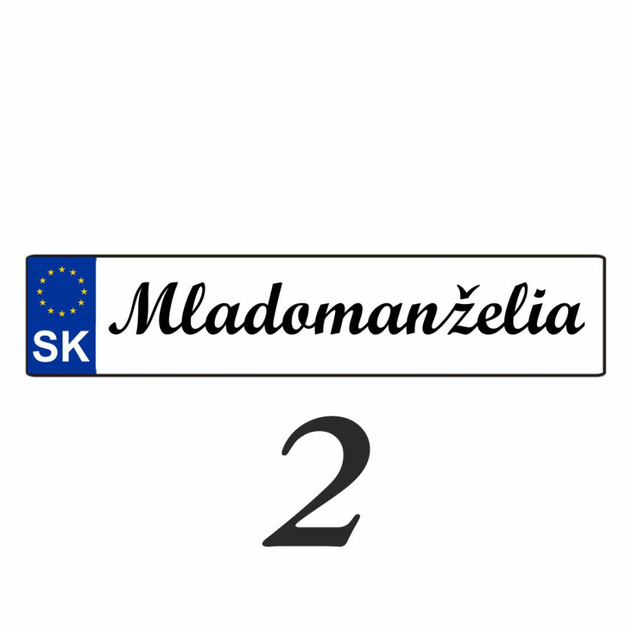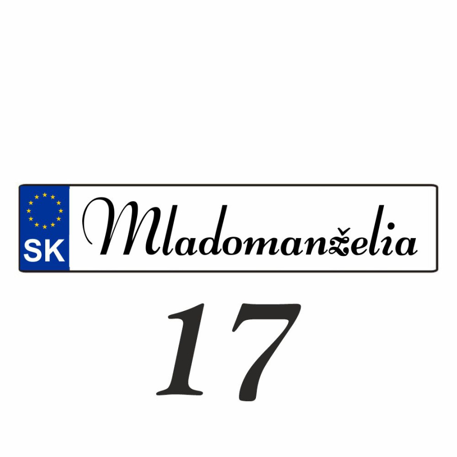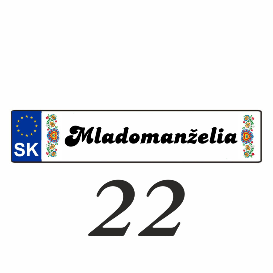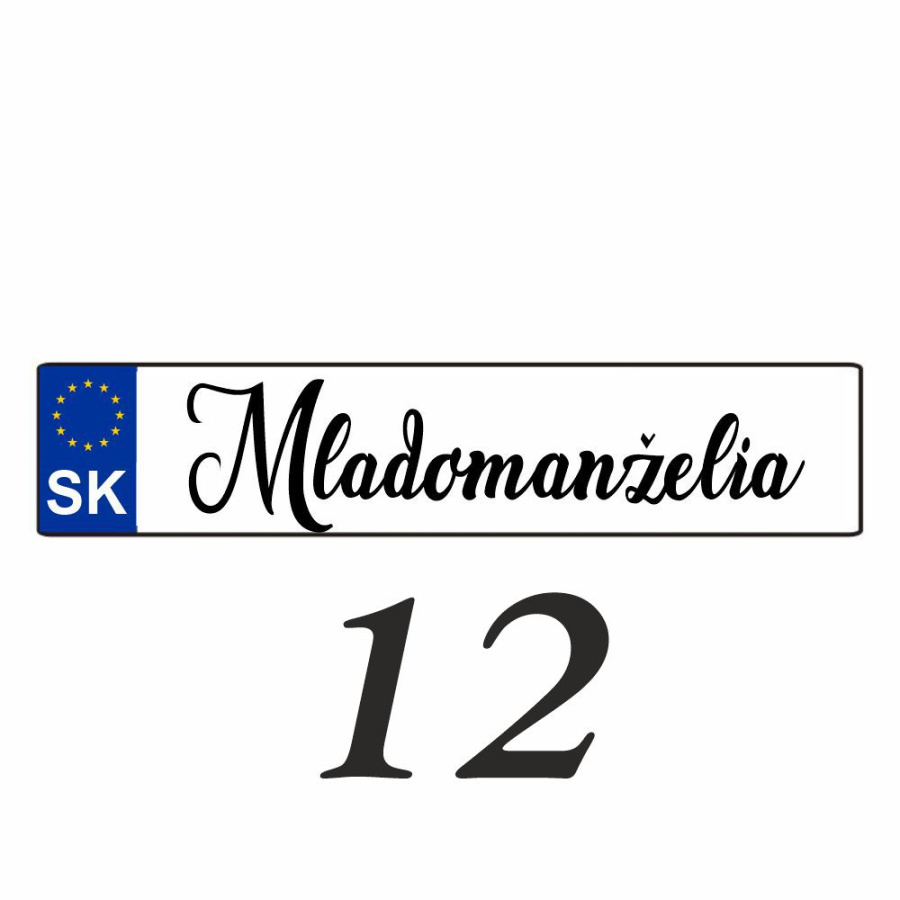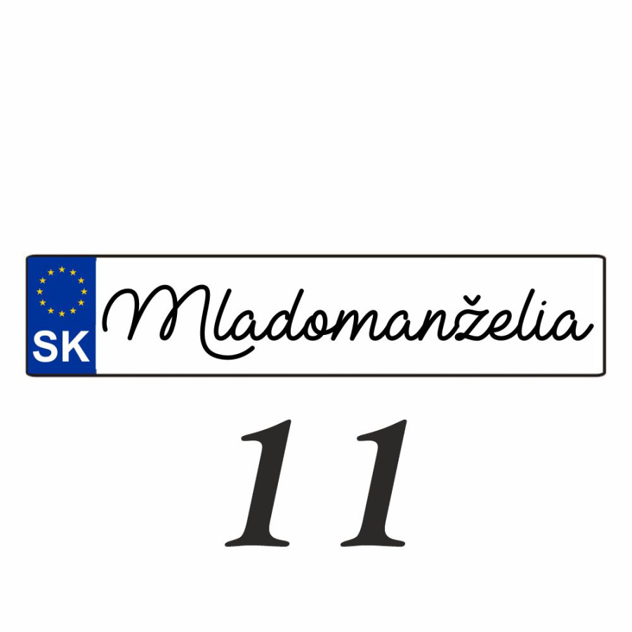 Svadobnú značku (ŠPZ) vám pripravíme presne podľa vašej požiadavky. Na ŠPZ môžeme umiestniť obrázky alebo iné motívy.
