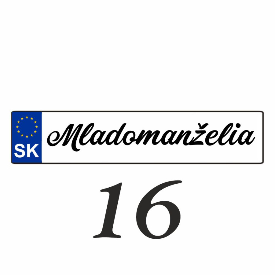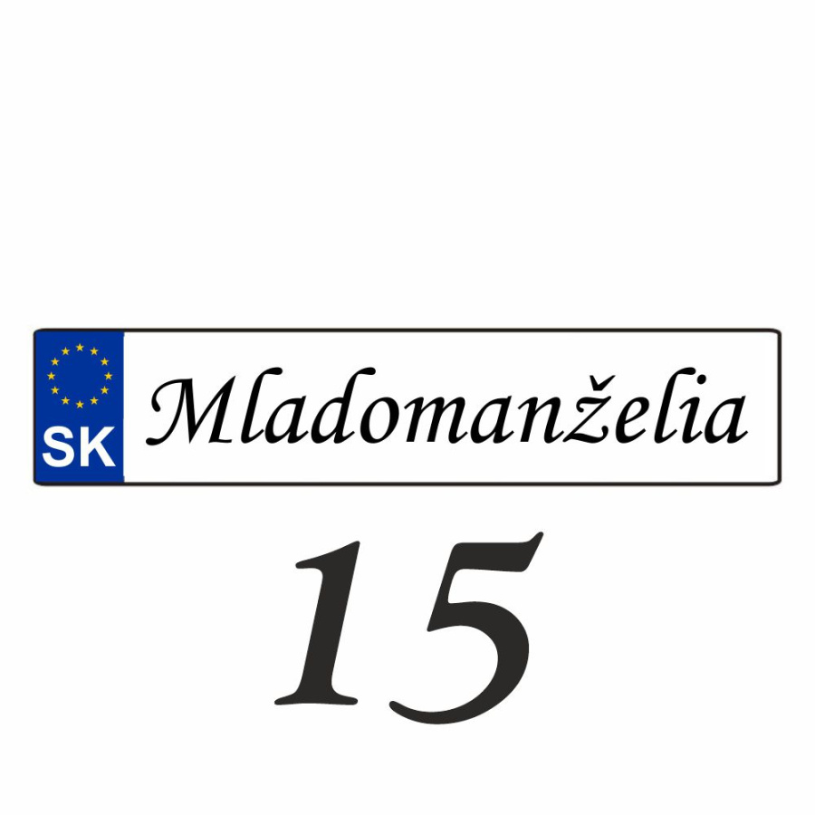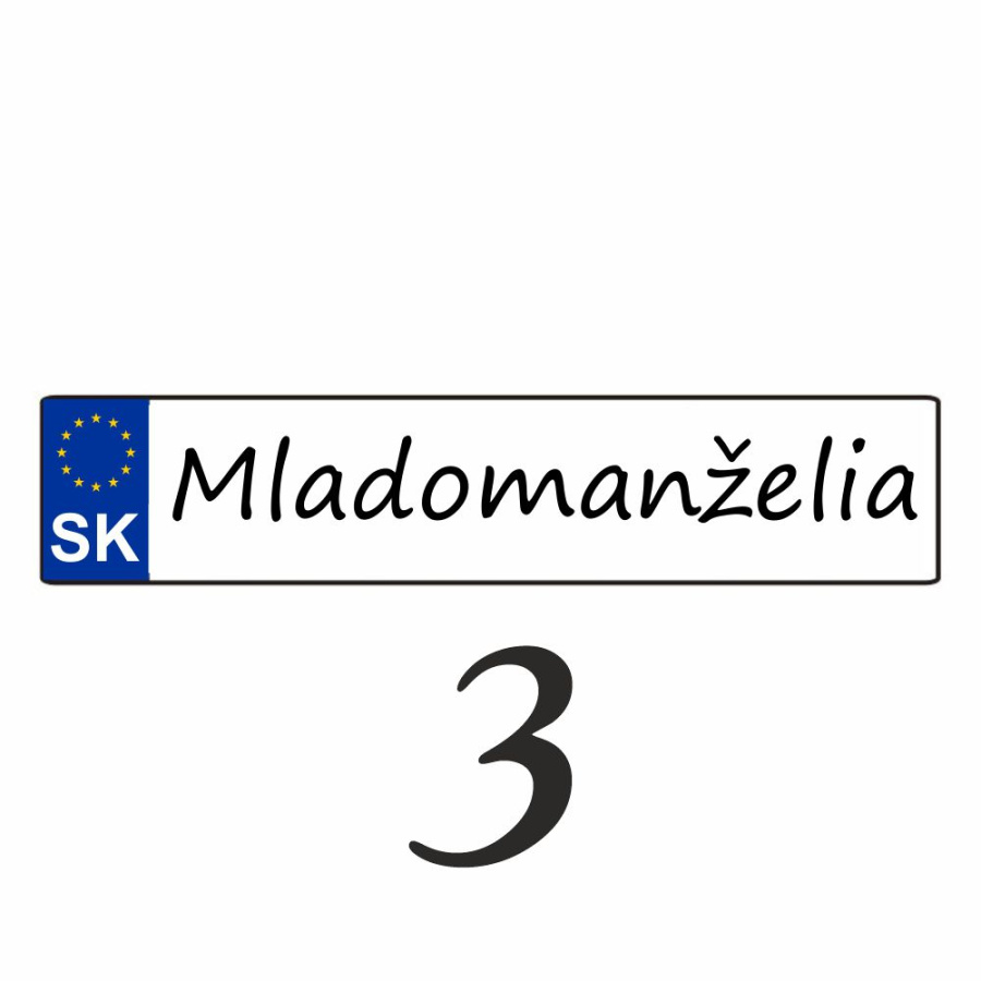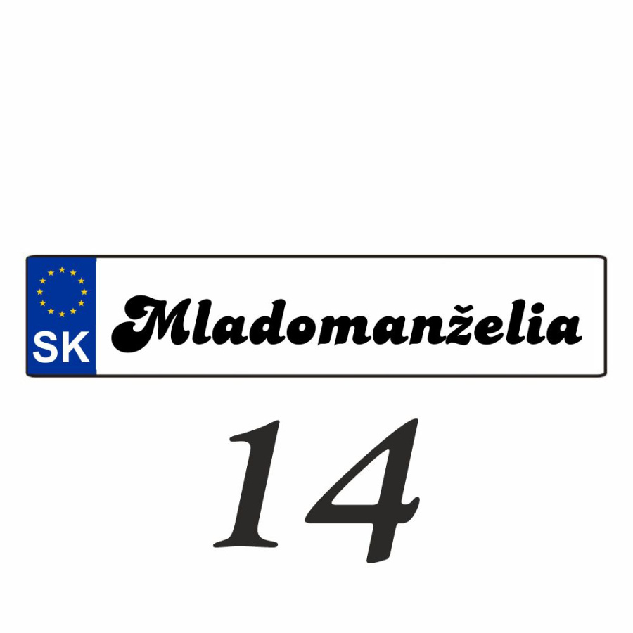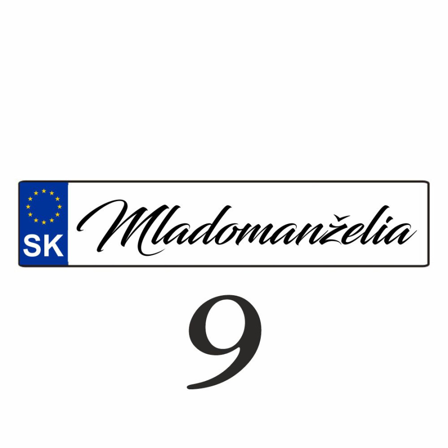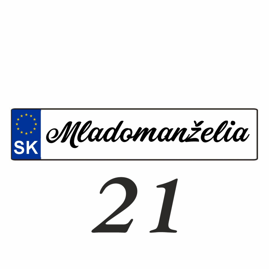Svadobnú značku (ŠPZ) vám pripravíme presne podľa vašej požiadavky. Na ŠPZ môžeme umiestniť obrázky alebo iné motívy.