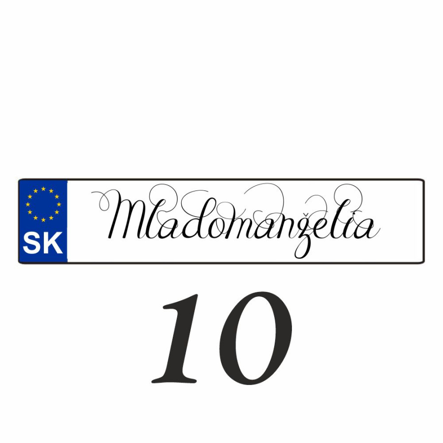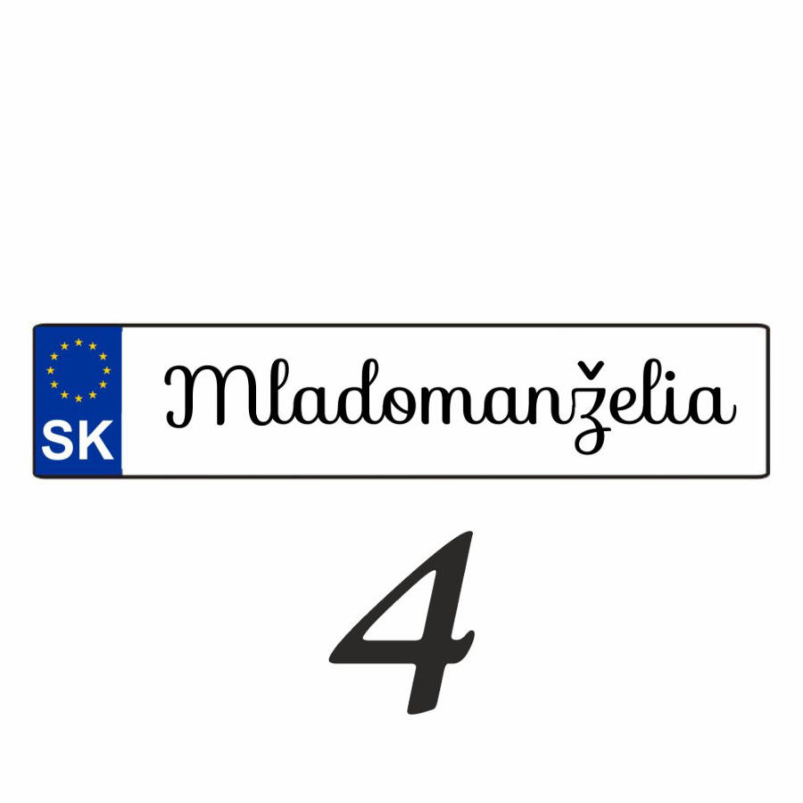 Svadobná ŠPZ - Svadobné auto musí mať jedinečnú výzdobu. Súčasťou tejto výzdoby je bezpodmienečne aj svadobná ŠPZ, ktorú vám pripravíme presne podľa vašej predstavy.