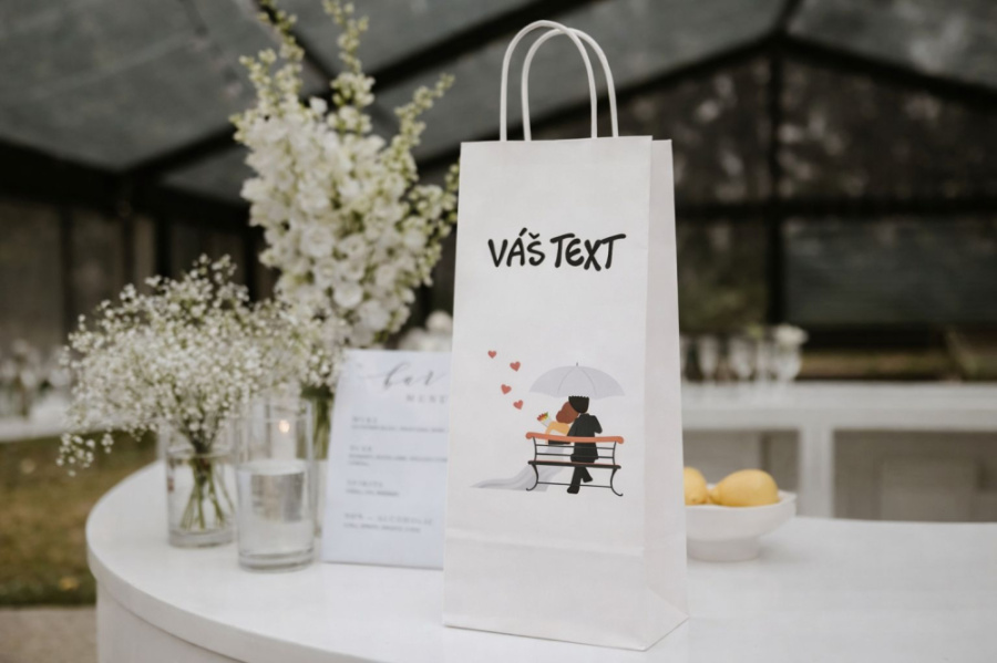 Darčeková svadobná taška na víno s vlastným motívom.
