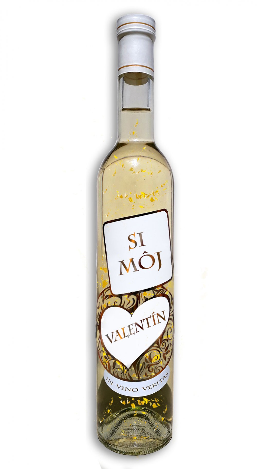Darčekové víno s venovaním na Valentína Etiketa s metalickým podkladom, lakovaná, plo priehľadná. Tlač offset. Vínová fľaša rozmery: Výška 33 cm, priemer... Obrázok je ilustračný, reálny vizuál sa môže mierne líšiť.
