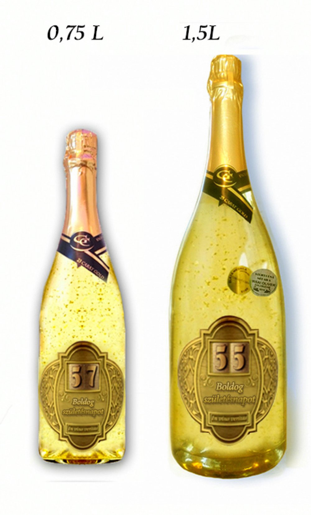 Gold Cuvee Fehér habzóbor 23 karátos aranypehellyel és kívánsággal Boldog születésnapot (életkorral 0-99 év között).
