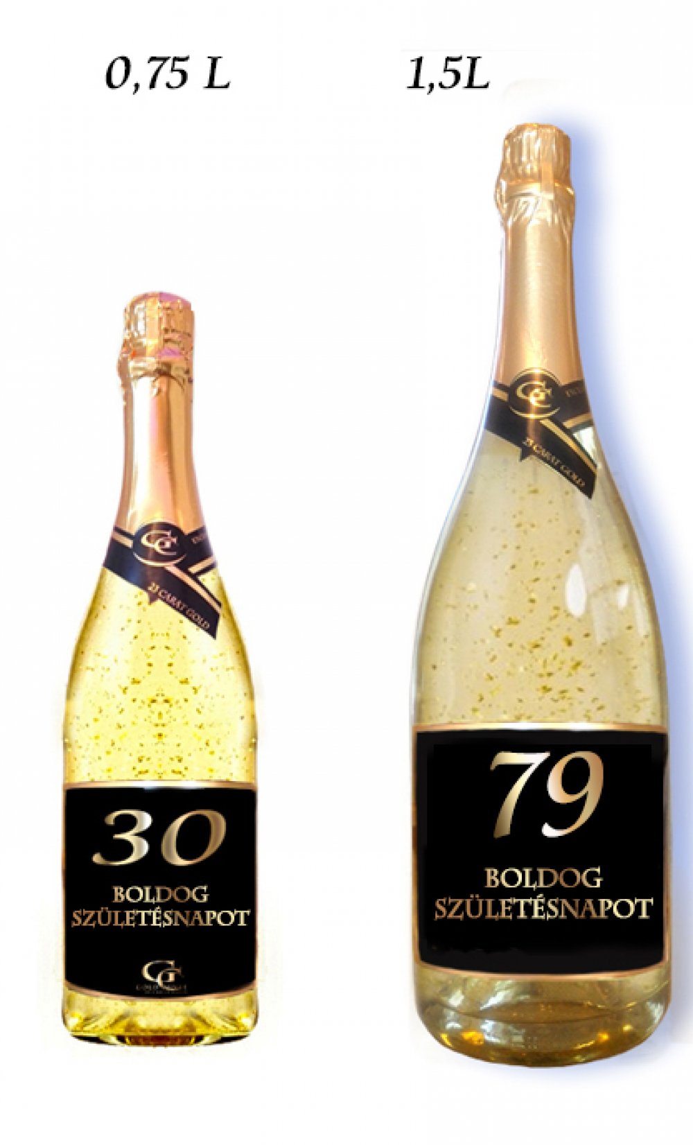 Gold Cuvee Fehér habzóbor 23 karátos aranypehellyel és kívánsággal Boldog születésnapot (életkorral 0-99 év között). Címke: fém címke Gold Cuvee Fehér...